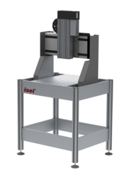 Die Basis bilden stabile Stahl-Aluminium-Konstruktionen aus isel Alu-T-Nutenprofilen und -Elementen. Die in den Linearachsen eingesetzten, spielfreien Kugelgewindetriebe sorgen für hohe Präzision, Genauigkeit und Laufruhe.